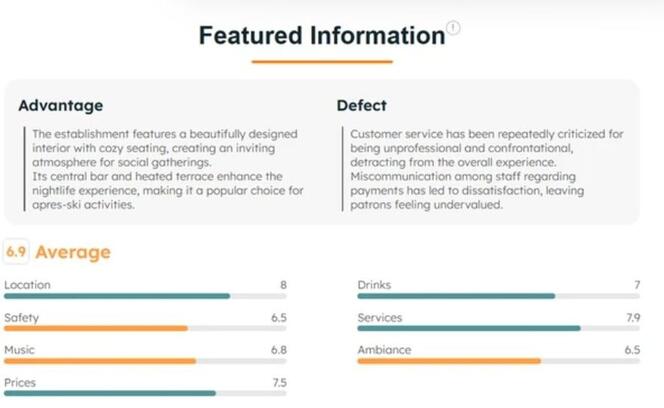 Der Betrieb bot Platz für rund 300 Personen im Innenbereich sowie zusätzliche Sitzplätze auf einer beheizten Terrasse. Fotos zeigen eine Einrichtung mit vielen Holzelementen. Zum Angebot gehörten regelmässige DJ-Auftritte, Sportübertragungen auf mehreren Bildschirmen sowie ein separater Raucher- und Shisha-Bereich.