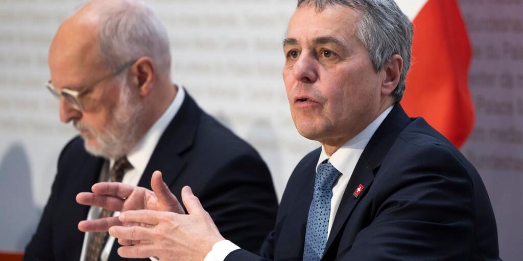 «Kein politischer Luxus»: Bundesrat Ignazio Cassis, vorne, mit Staatssekretär Alexandre Fasel, zieht Bilanz zur Vernehmlassung über die Bilateralen III.