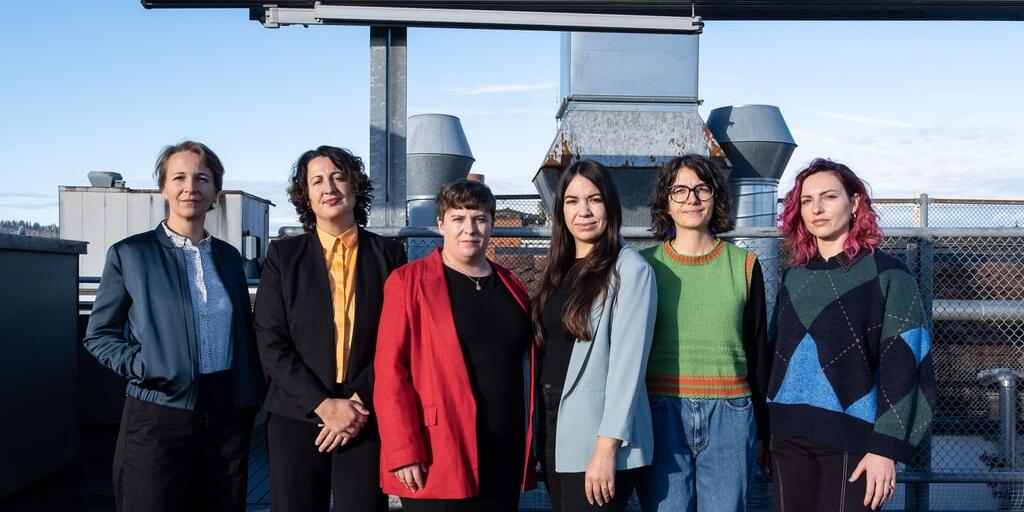 Die Kerngruppe des Netzwerks Istanbul Konvention präsentierte den Bericht zu den Massnahmen in der Schweiz und vergab die Note ungenügend: von links Barbara Lienhard, Blertë Berisha, Julia Meier, Alexandra Gnägi, Anna-Béatrice Schmaltz und Isabel Vidal Pons.