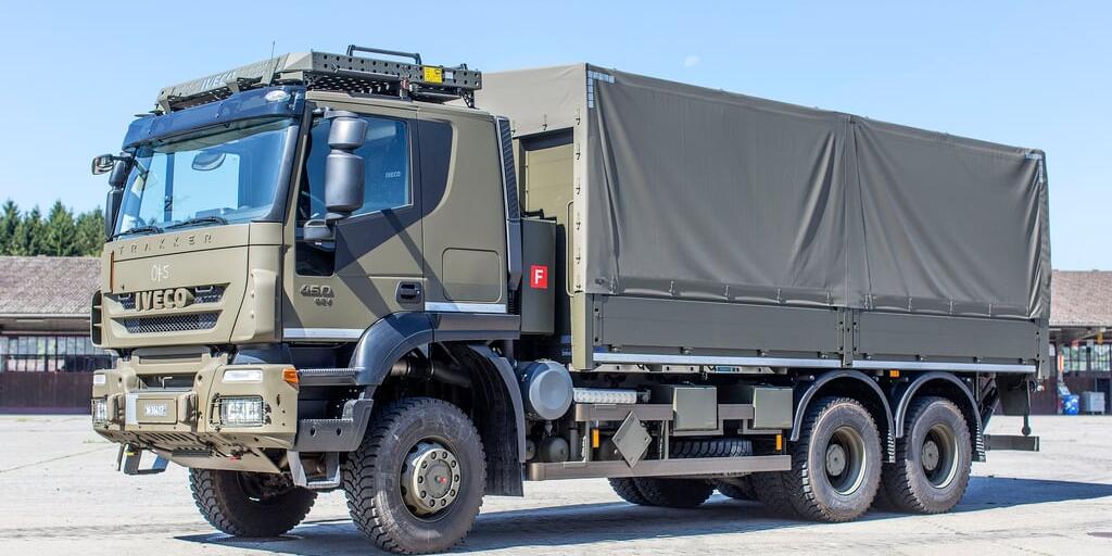 Motorfahrer der Armee dürfen nicht nur Militärlastwagen fahren. Sie dürfen sich auch im zivilen Berufsleben hinters Lastwagenfahrrad setzen (im Bild: Ein Iveco-Fahrzeug der Armee, aufgenommen in Hinwil am 17. Juli 2014).