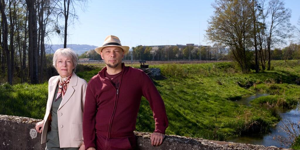 Aline Crettol und Alaric Kohler vom Verein EcoTransition – La Broye wollen einen Geflügel-Schlachthof auf dem Feld hinter ihnen verhindern.