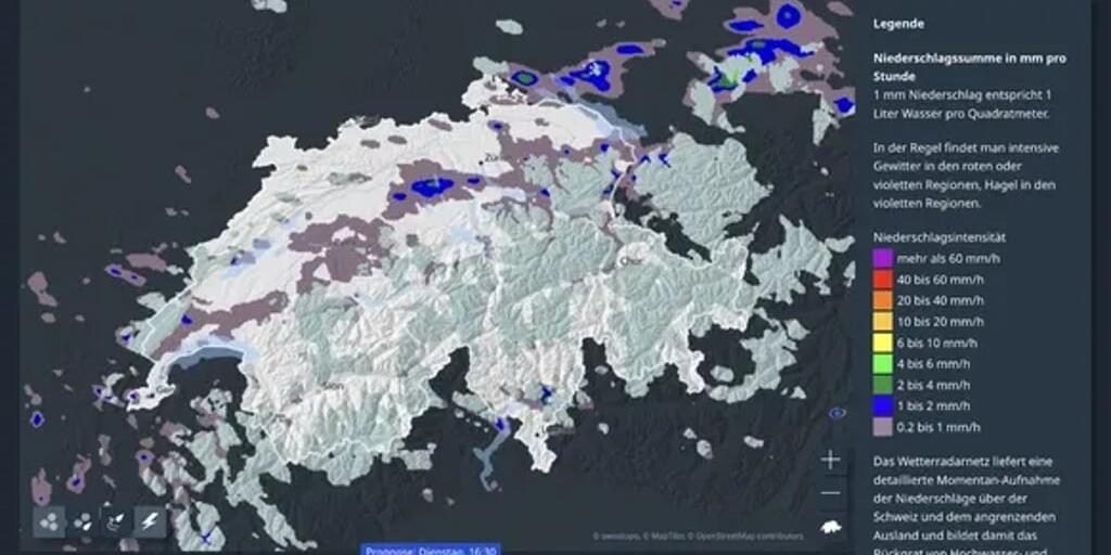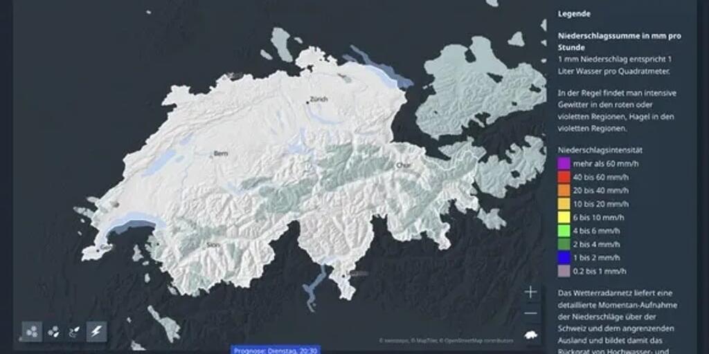 Auch die Blitzaktivität war enorm, wie SRF News weiter mitteilt. Bis 20 Uhr abends verzeichnete man mehr als 14'000 Blitze über der Schweiz. (luk)