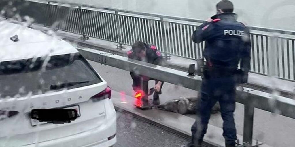 Der tote Wolf am Sonntagmorgen auf dem Viadukt des Sihlsees.