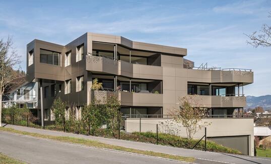 Am Hang zwischen der Meierhofstrasse und dem Buchenweg situiert, liegt das Mehrfamilienhaus nahe des Waldes.